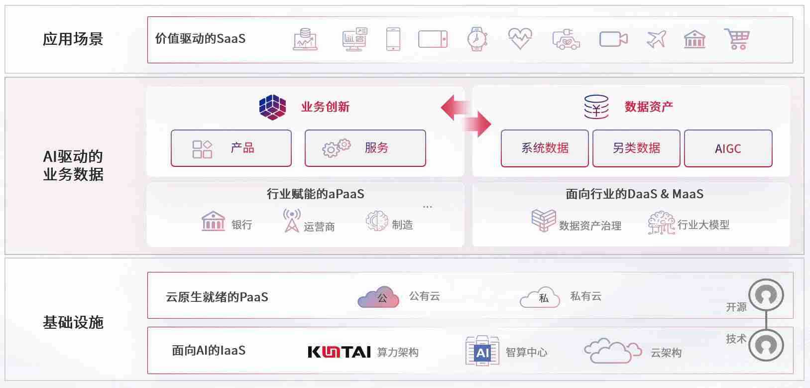数字时代,,,,围绕企业数字化转型的关键要素,,,,长征娱乐数码开创性的提出数云融合战略和技术体系框架,,,着力在云原生、、、、数字原生、、、AI原生和信创产业上架构产品和服务能力,,,为处在不同数字化转型阶段的快消零售、、汽车、、金融、、、医疗、、、、政企、、教育、、、、运营商等行业客户提供泛在的敏捷IT能力和融合的数据驱动能力,,,,构建跨界融合创新的数字业务场景和新业务模式,,,助力企业级客户建立面向未来的核心能力和竞争优势,,,全面推动社会的数字化、、、、智能化转型升级。。。。